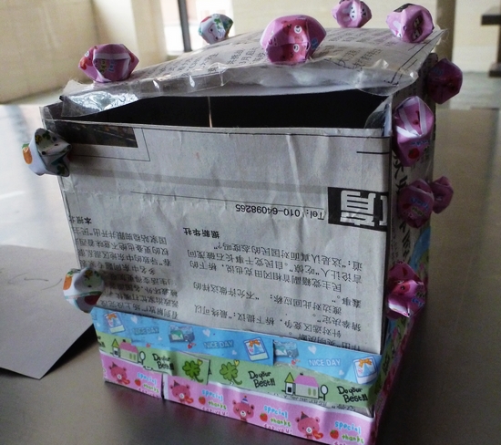 比赛于8点正式开始。同学们利用废报纸、泡沫、吸管、饮料瓶、纸杯、铅笔屑、牛奶盒等废弃物品,充分发挥自己的想象,进行精心的构思和制作,使这些被遗弃的垃圾“脱胎换骨”,蜕变成了生活中实用的“宝贝”。