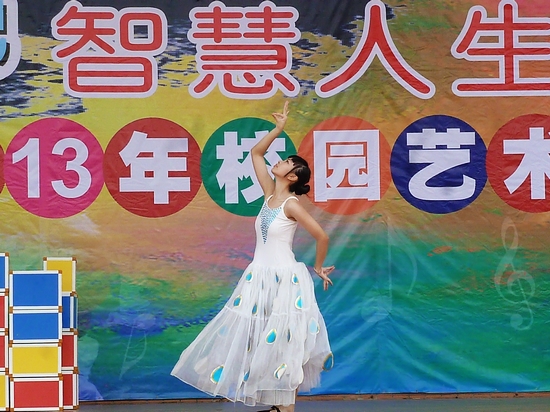 闭幕式上,吉他兴趣班集体弹奏的《罗密欧与朱丽叶》深情感人,赢得了同学们热烈的掌声。本届校园十佳歌手高一(5)班李凌嫣演唱的《在那遥远的地方》、高一(2)班王华桢同学的《童话》,声情并茂,引来观众的阵阵喝彩;赵爽老师激情演唱《白色羽毛》,她的歌声如行云流水,让全场师生赞叹不已;还有学校舞蹈队热情上演的《筷子舞》、街舞社的舞蹈秀《mixture》、孔雀舞等,节目炫丽多姿,精彩纷呈……