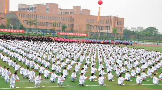 顿时,锣鼓喧天,鞭炮齐鸣。艺体组和生活部年轻的老师们,为艺术节送上了一段精彩的盘古表演。
