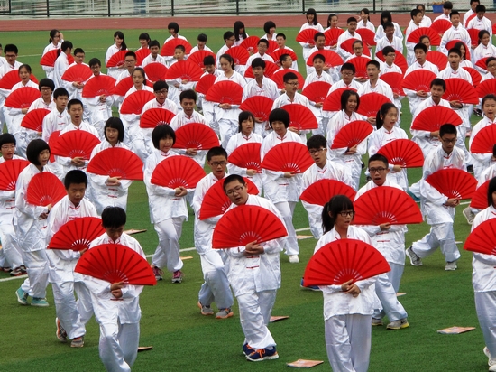 各个年级的拉歌表演,把开幕式推上了高潮,七年级《我的歌声里》响彻云霄,八年级在白云蓝天中《自由飞翔》,高中部的同学们放声歌唱,一曲《大中国》激奋人心,最后全校师生那《怒放的生命》,更是意气风发,歌声嘹亮……