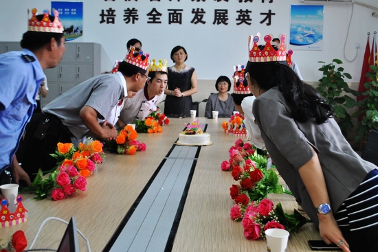在大家的掌声中,江楚桥校长宣读了五月寿星名单,寿星们点燃了象征希望与梦想的生日蜡烛,并许下真诚的心愿,大家都沐浴在欢乐之中,在美丽的鲜花陪衬下绽放出甜蜜、灿烂的笑容,纷纷相互祝愿:“生日愉快!幸福安康!”学校领导为寿星们送上写有具有个性与针对性祝福语的“生日贺卡”,表达了学校对寿星们良好的祝愿与无限的敬意。