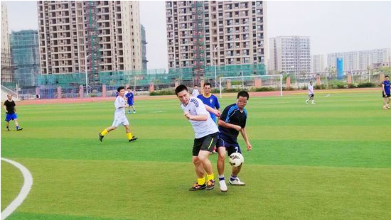 足球场上演着白蓝对决,友谊赛也要全力以赴!