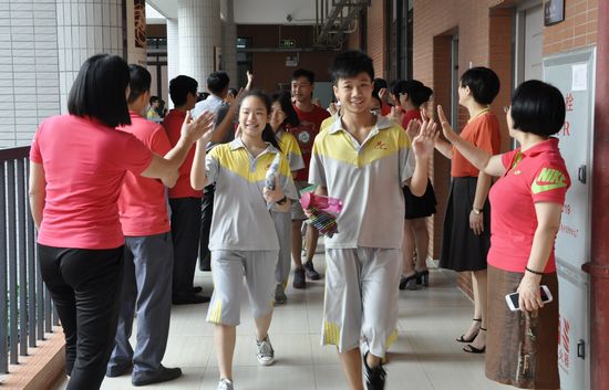 我校学生达到提前批和第一批录取分数线的人数比例大大超过广州市平均水平:达到提前批录取分数线人数为435人,比例高达72%,是广州市平均水平的1.41个倍;达到第一批录取分数线580人,占比96%,是广州市平均水平1.48倍。