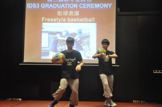 姚泽槟和张哲斌的街球表演。姚泽槟是学校街球社的创始人和社长,在他和同伴们的努力下,街球社成为学校最具影响力的社团之一。