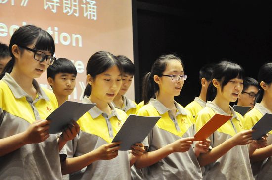 高一的学弟学妹们为毕业生送上独特的告别《再别康桥》。