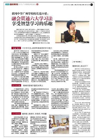 广州市黄广中学的“六大学习法”跟黄广中学有很大的关系,“我们取其精髓,把黄广中学的学习方法更加系统化,使学习变成智慧行为。”范小星介绍道,这种方法是由黄广中学暨北京大学优秀毕业生、黄广创办者游烈峰校董所创,学生能享受到快乐、智慧、高效学习的乐趣,收获的学习能力终身受用。