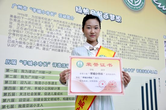 广州市陈建华市长亲自授予金小钰同学“羊城小市长”荣誉。