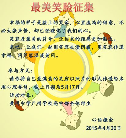从4月30日起,广州市黄广中学面向全校师生发起“最美笑脸”征集活动,号召同学们分享自己最满意、最阳光、最温暖的笑容。各班心理委员深入班级进行宣传动员,紧锣密鼓地收集着同窗挚友们绽放笑容的美照。经过协会成员及心理老师的认真筛选后,133张阳光灿烂、畅快开怀的笑脸在校内人流密集区域公开展出,吸引全校师生驻足观赏,感受笑容的所传递分享的快乐。