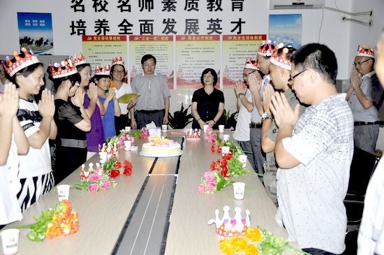 借中考、高考再创佳绩的喜庆和快乐,广州市黄广中学an>7月4号晚为7月份过生日的员工们举办温馨欢乐的集体生日会。