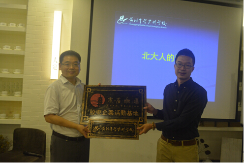 北大校友众筹单位---未名咖啡陈智鹏董事长为“黄广学校教职工活动基地”授牌