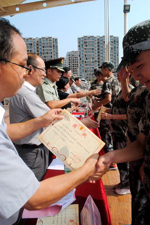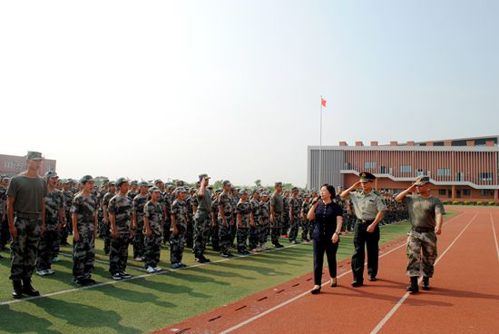 “2015年是中国人民抗战争胜利和世界反法西斯胜利70周年,希望参训的同学以高昂的士气、饱满的热情和坚忍不拔的毅力积极投入到军训各项活动中,通过军训进一步强化国家意识和国防意识,培育吃苦耐劳、团结协作和牺牲奉献精神!”