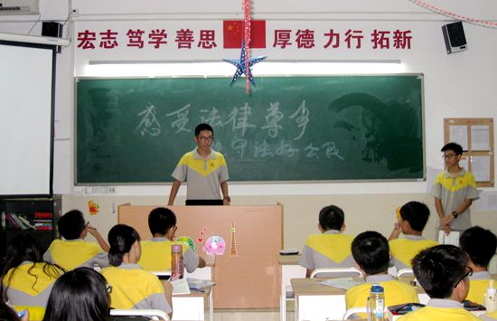 黄广学校充分利用花都区法院--“法制教育基地”这一特别教育渠道的作用,组织学生到法院参加庭审,将此作为促进学生终身德育发展的重要内容,帮助学生通过自身难忘的体验,树立正确的人生观、世界观、价值观,效果良好。