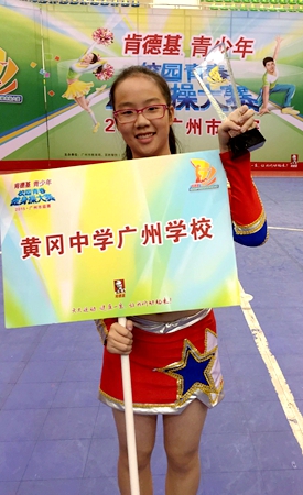广州市黄广中学以突出的整体表现及良好的团队默契惊艳全场,最终取得初中组啦啦操《活力无限》一等奖(全场第二名)的优异成绩,而负责总体编排指导的刘丽老师荣获“优秀教练员”称号。