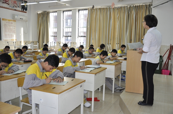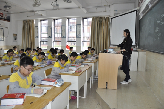 数学竞赛班,学生在陆剑虹老师指导下,专心演练。