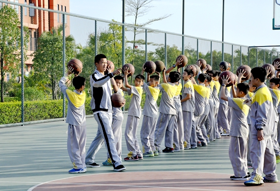 篮球班,在吴炼老师指导下苦练基本功。