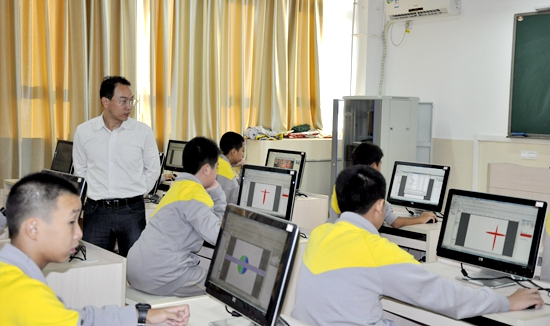 电脑设计班,陈传林老师耐心指导学生设计页面。