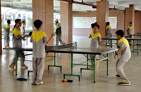 乒乓球班,吴石金老师要求队员从基础学起。