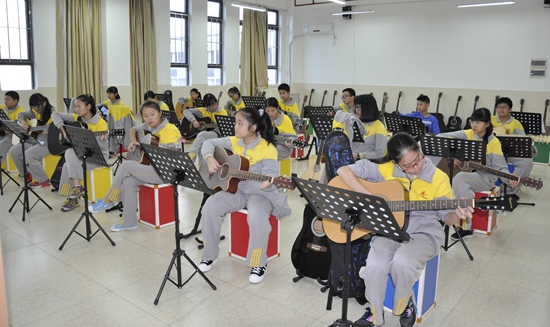 吉他班,陈超老师指导下,美妙的音乐从指尖流出。