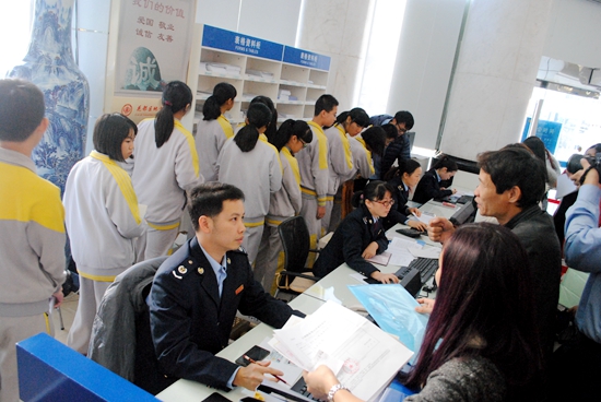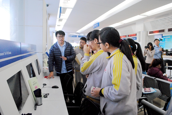 税务局派出专门的导览员为学生导游讲解。“左边交‘房产税’的地方,右边交‘个人所得税’等综合税,左右个区域各分设一个询问台,方便纳税人询问相关资料、领取纳税表格,大厅共有21个窗口,1-15号是办理综合税收,17-21号是交房产税的地方,另设16号窗口处理发票……”导览员耐心细致的介绍和解答,使参与活动的学生对税务工作的流程有了一定了解。