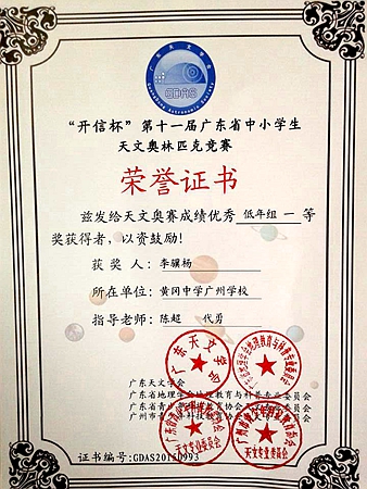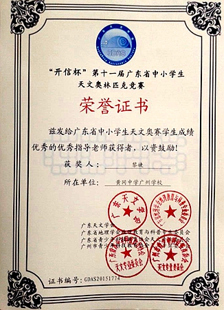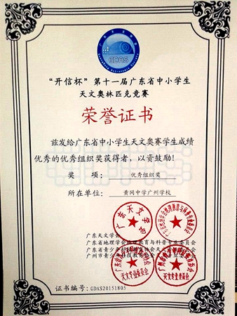 近日,广州市黄广中学span>2015年第十一届广东省天文奥赛(开信杯),经过激烈的角逐取得优异成绩,多位参赛同学获得广东省三甲荣誉。