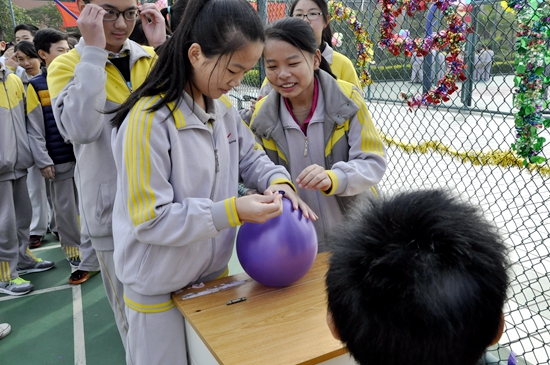 各班级的趣味游戏摊位前都围满学生,吸引学生的不仅是游戏奖券,创意满分的特色游戏对于学生们更具谜样“魔力”。