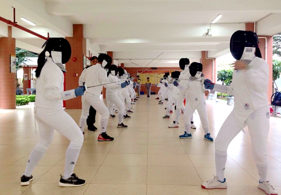 日前,广州市黄广中学开设系统的击剑训练课,由国家高级击剑教练、国际级击剑裁判辛教练和国家一级击剑教练、国家一级击剑裁判马教练带领授课,为同学们提供从体能到技巧,从动作规范到思维方式的全面指导训练。