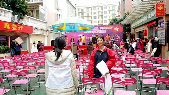 “通过这次活动,我体会到帮助别人的乐趣,举办社区联欢晚会的露天场地小,当天还下雨,很多居民来的时候都不愿意就坐,我们就把椅子一张张地擦干,方便冒雨到场的观众坐下观赏节目,观众们发自内心的满意笑容让我们的心感到无比的温暖。虽然擦椅子是一件很小的事情,但却让我收获了真切的感动和强大的动力,参加这次志愿者工作,值得!”叶沅霏同学回忆着参与义务互动的片段,露出满足的笑容。