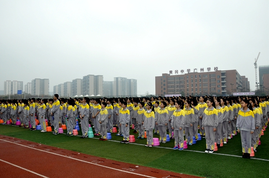 在雄壮的国歌声中,广州市黄广中学span style="line-height:2;">2016届“初三中考百日誓师大会”隆重召开!