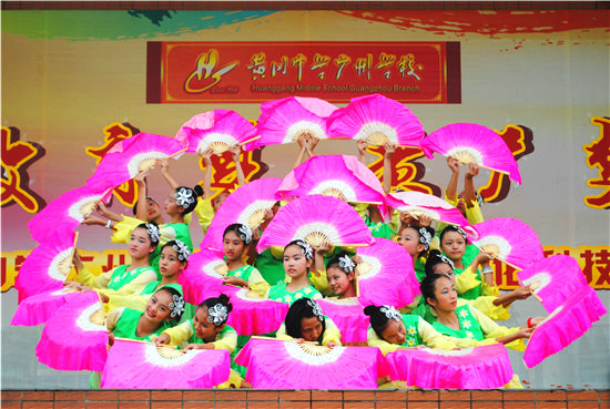 广州市黄广中学,以全面实施“智慧教育”体系为中心,根据现代青少年成长的各方面需求,坚持“培养特长、激发兴趣、活动育人、素质发展”的育人思路,着力培养学生的艺术特长和对科学创新创造的兴趣,通过打造全员参与的“科技节、艺术节、运动节”等系列特色活动,为学生搭建发挥个人才华、展示自我魅力的大舞台。无论大小竞赛或表演,全体学生积极参加,真正实现“一人一节目,全员同参与”,让每一个学生在一个个趣味十足的精彩节目中享受艺术的激情、科技的神奇、创新的乐趣。