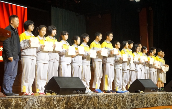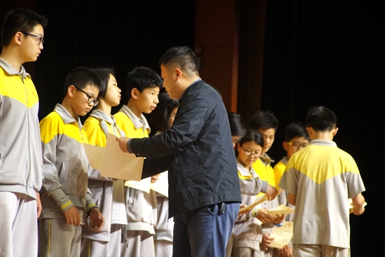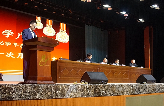 2016年3月31,广州市黄广中学次月考表彰大会在“英达礼堂”隆重举行。大会由杜辉副主任主持。