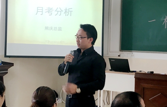 表彰会上,教学总监熊庆老师发言,他提出:学校国际部的每一位老师对同学们均抱有满满的信心,在同学们冲刺国际理想大学路的道路上,师生是“同伴”关系:同学需要任何帮助,老师们都会立即伸出援手,师生双方共同努力解决难题。