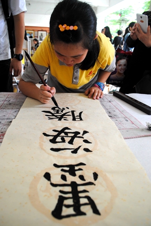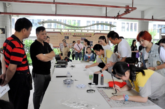 书法组的即席挥毫引得学生家长、专家来宾们驻足欣赏。