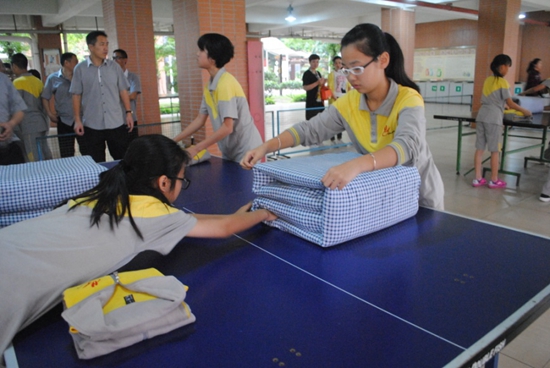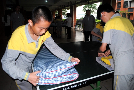 学校对各项生活技均坚持着高标准,无论衣物还是被褥的折叠、放置都有着不同的考量标准,学生在熟练掌握技巧的基础上更需要细心、细致。