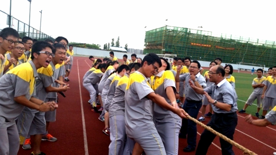 年级内部不定期举行班际竞赛,拔河、趣味接力、二人三足、跨越障碍等刺激的团体运动比赛,要求每班每位同学都参与其中,让学生在紧张有趣的团体赛中形成团队协作意识,感受运动的乐趣。