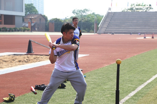 学校邀请资深棒球教练、前国家队兼现任省队运动员为国际高三学生开设棒球特色课,让同学们在户外课堂亲身感受这项运动的魅力(图:击球练习,有助于锻炼学生的手眼协调能力和面对考验的心理素质)。