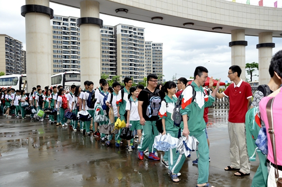 黄广考生们早早汇合于文化广场,以饱满的精神状态迎接考验。