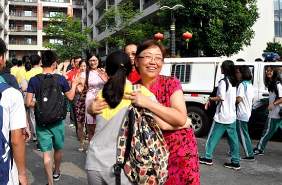 一个温暖的微笑、一个轻轻的拥抱,孩子们充满信心地走向考场……