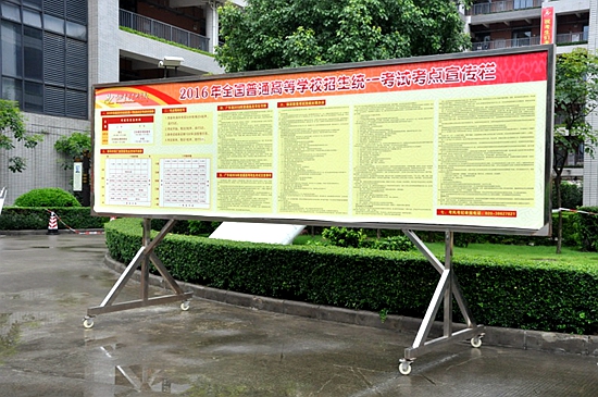考场的注意事项详细列于展板,放置在学生进入考场的必经之处,供考生驻足查阅。