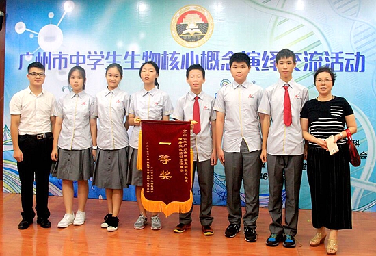近日,我校八年级学生团队(李雪涵、张子豪、陈琬霖、钟恵雯、刘柏语、林傲六名同学组成),由姚祖熠、罗玲老师领队辅导参加“广州市初中生生物学知识与能力综合展示赛”。