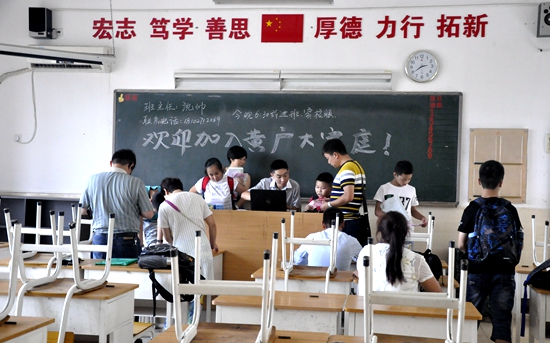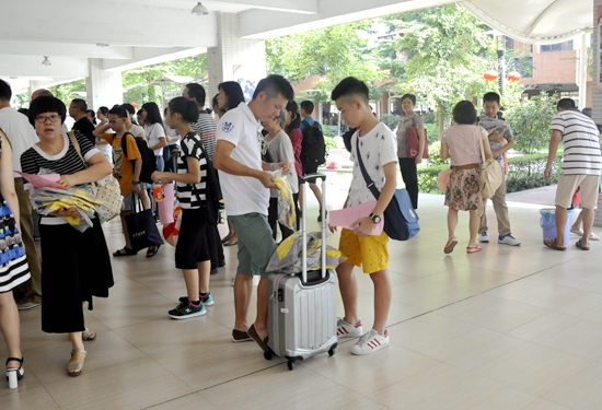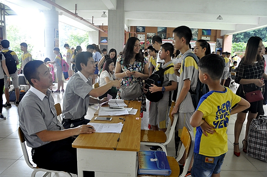每个班级都在教学区架空层设有临时驻点,班主任老师早早等待学生的来临,耐心询问学生在家学习和生活的情况,倾听学生假期的各种游历趣闻,与家长就孩子暑假在家的具体表现进行探讨。