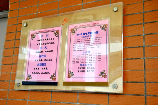 为帮助七年级新生更快找到班级所在位置,了解自己所在班级的班风文化,对即将融入的班集体拥有初步的认识,七年级教室门口详细列出本班的每一位成员,并清晰展示出班风、班训等各具特色的班级文明。