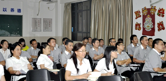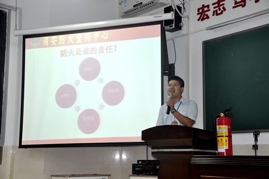 为了进一步提高教职工消防安全防范意识和面对突发事件时的应急自救能力,2016年9月26日晚,广州市黄广中学全防火宣传教育中心李进军主任来校开展主题为“消防安全知识及自救逃生技能”的讲座,全体班主任、生活老师和校警队员参加讲座。