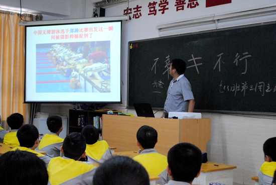 2016年里约残奥闭幕之际,为全面落实“黄广智慧德育”体系中的逆境商数培养,激发莘莘学子“奋发图强,成就梦想”的斗志,根据学校董事会的部署,学生发展处组织全校各年级于9月21日下午召开“不幸≠不行,残奥会:生命的精彩与命运无关”逆境商数主题班会。