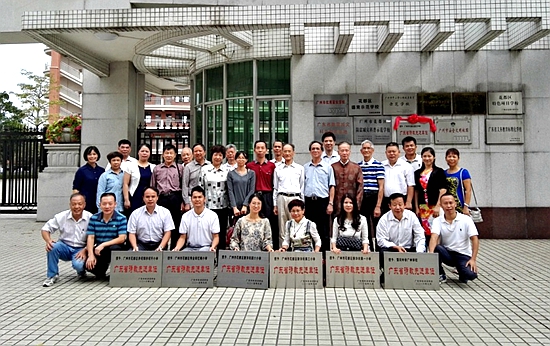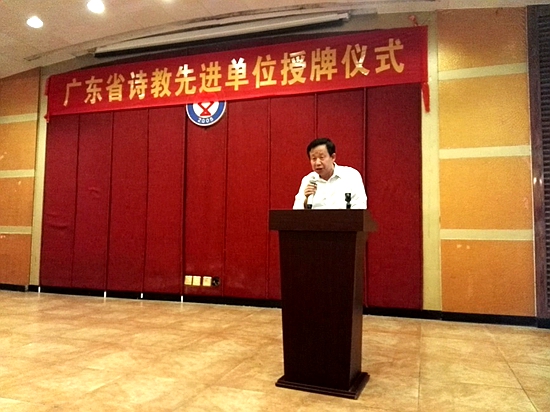 广东省中华诗词学会副会长廖启良先生、副会长丘海洲先生亲自为广州市黄广中学发“广东省诗教先进单位”牌匾。