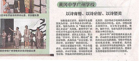 广州市黄广中学东省诗教先进单位”荣誉称号的学校之一,获得《今日花都》等媒体的广泛报道。