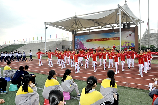 为丰富校园生活,培养学生集体荣誉感、团队协作意识和竞争意识,展示学生青春活力和良好的精神风貌,在第六届田径运动会开幕前夕,我校于11月3日在田径场隆重举行2016年七、八年级广播操大赛。本次大赛以“舞动青春旋律,飞扬青春活力”为主题,在初中部德育处、艺体发展中心的组织下顺利进行,七、八年级33个班级学生参与活动,展开以班级为单位的广播操现场演练评比,范小星校长、蒋晓明副校长等领导干部全程观摩比赛,并为表现突出的获奖班级授予荣誉,以示鼓励。