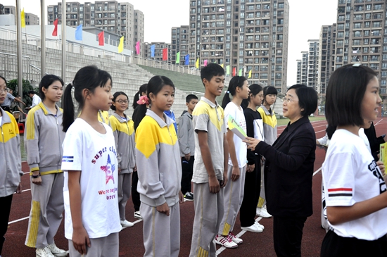 蒋晓明副校长现场就各年级的整体表现、精神风貌作出点评,并号召年级师生积极参与体育运动,在校园的日常生活中锻炼自身拥有强健身体素质,在校运会竞技比赛中赛出水平、赛出青春,同时通过以班级为单位的竞技比赛培养学生团队合作意识,强化学生集体荣誉感。