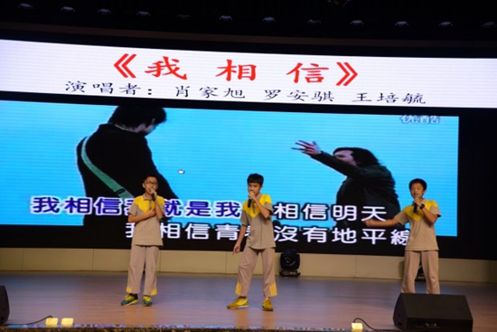最后,在校园小歌手肖家旭、罗安琪、王培毓的动情演唱下,现场学生的满腔热血与澎湃激情被掷地有声的歌词与激动人心的旋律所掀起,“我奋斗,我相信,我成功!”大会在师生的热情共歌中落下帷幕。
