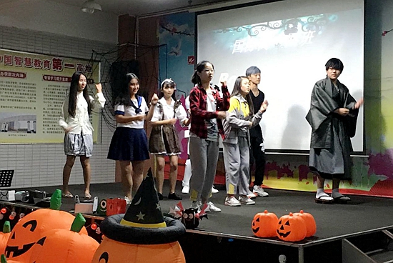 广州市黄广中学传统活动是由国际部学生全权负责筹划举办,从活动材料的购置到晚会前的策划、彩排到最后晚会现场的布置……学生们用自己的创意和行动为校园带创造了万圣节的欢乐时刻。