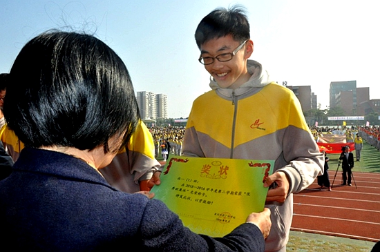 “全校各班级紧紧围绕‘打造全国顶级精英学校’的宏伟目标,以‘四个好习惯’为抓手,涌现了班风良好、学风浓厚的优质班级,也成功培育出一大批成绩优异、特长突出、素质全面的优秀学生。”蒋晓明副校长现场宣布奖学金获得者名单,并公布优秀班集体、班级之星、优秀团队等荣誉的表彰文件。
